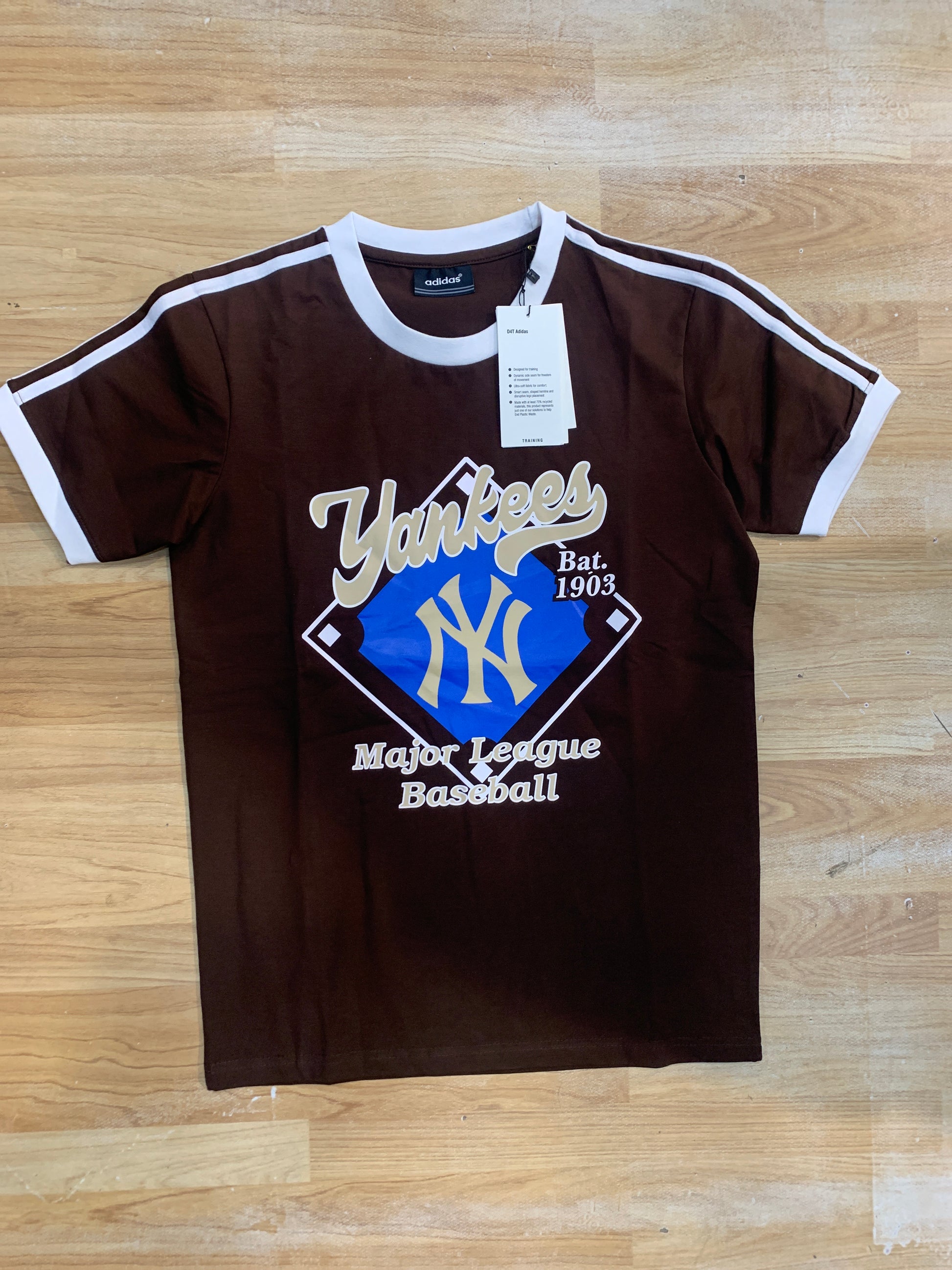 Adi Ida wen Newyo Yankees Dark Brown White Colour Half Sleeve Baseball Round Neck Premium Quality TShirt 988799