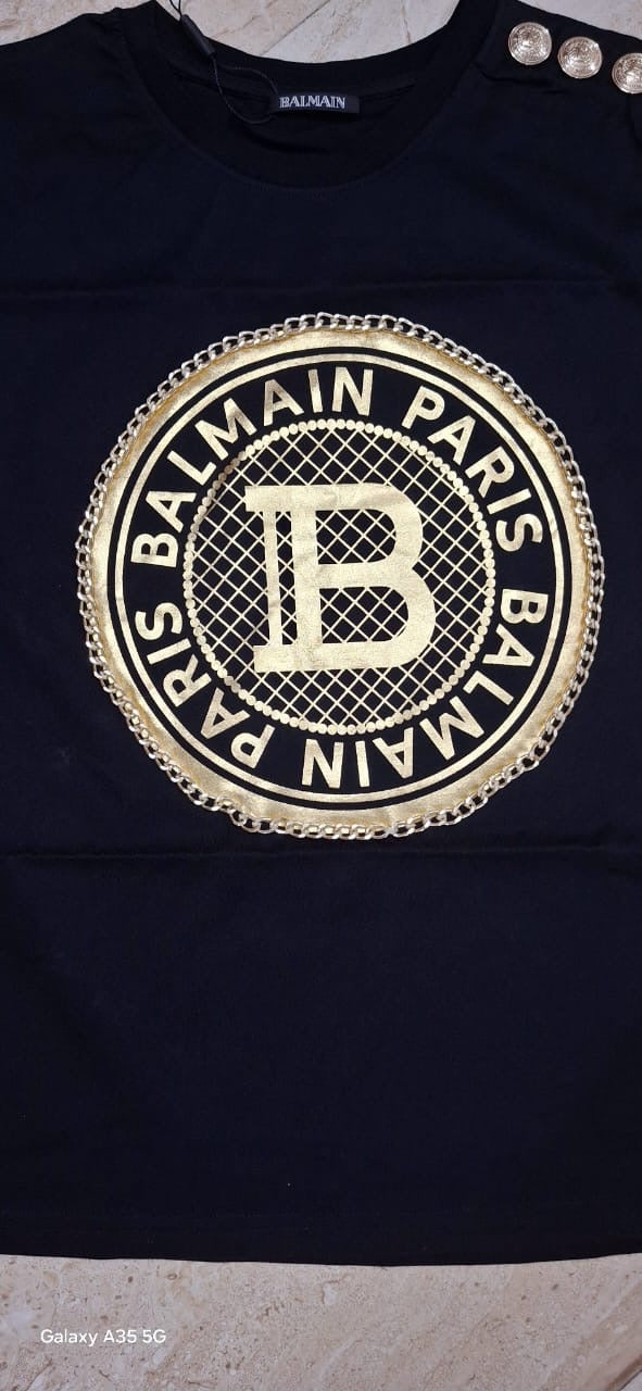 Bal Lab Black Colour Gold Chain Print Shoulder Gold Button Round Neck 13273