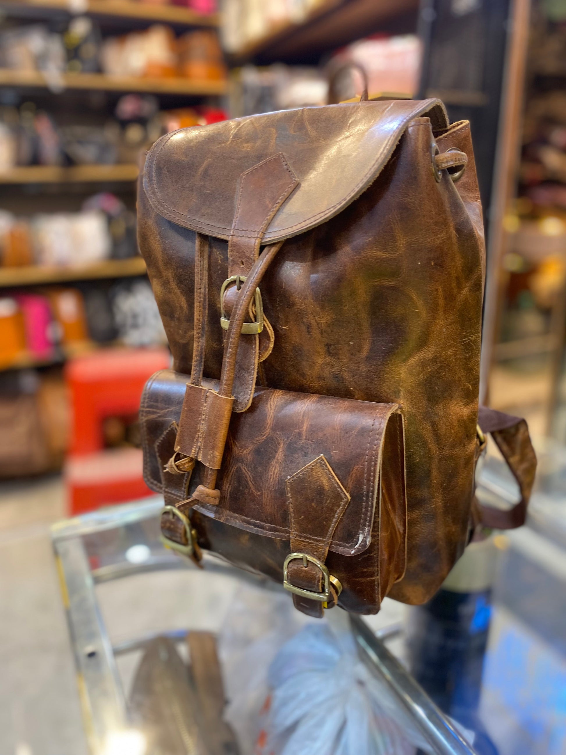 Brown Colour With Plain Design Genuine Leather Premium Quality Backpack 44404