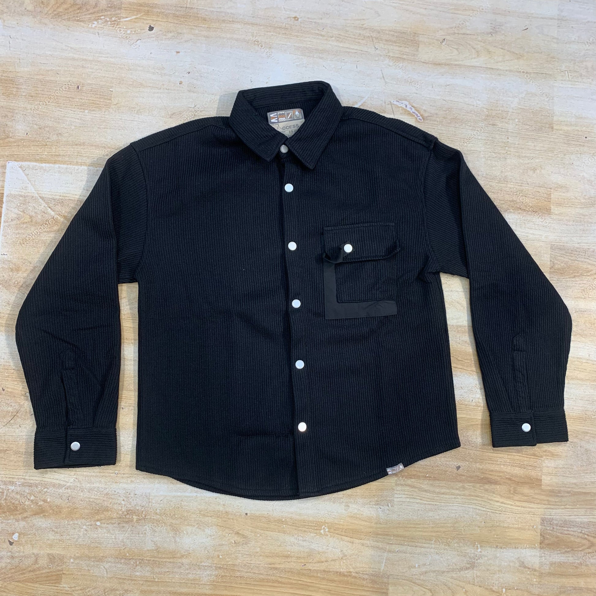 ACCESS Black Colour Corduroy Front Pocket Imported Shacket SIWN-19