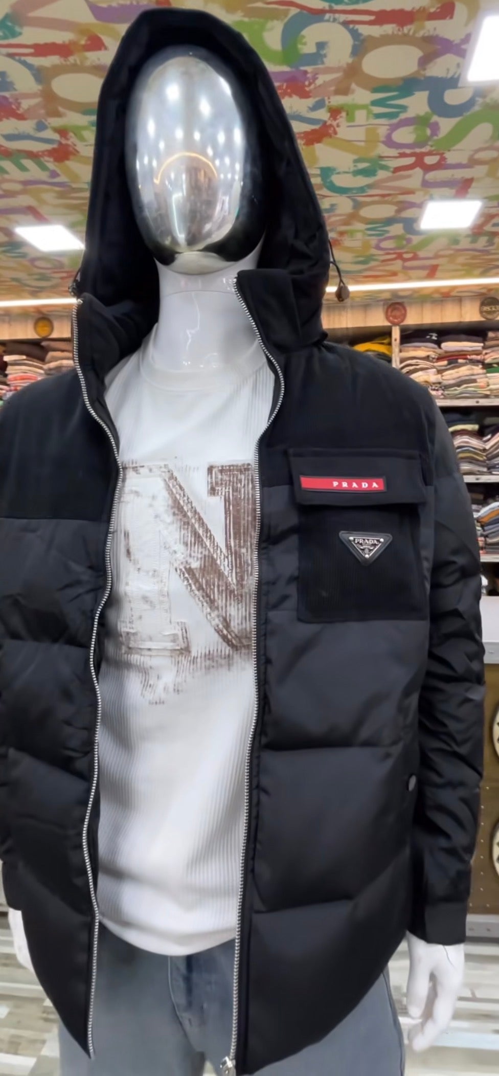 ARP PRA Black Leather With Corduroy Premium Quality Puffer Men’s Hooded Jacket J9530