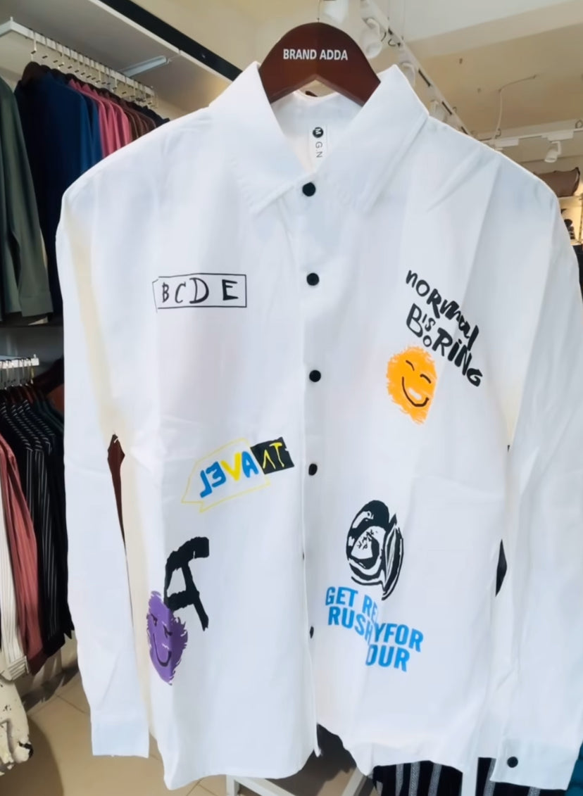 G.N Cream Colour Normal Is Boring Printed Oversized Men’s Shirt 9026