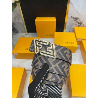 NEF Gold Buckle Beige Print Strap Imported Italian Leather Men’s Belts 988740