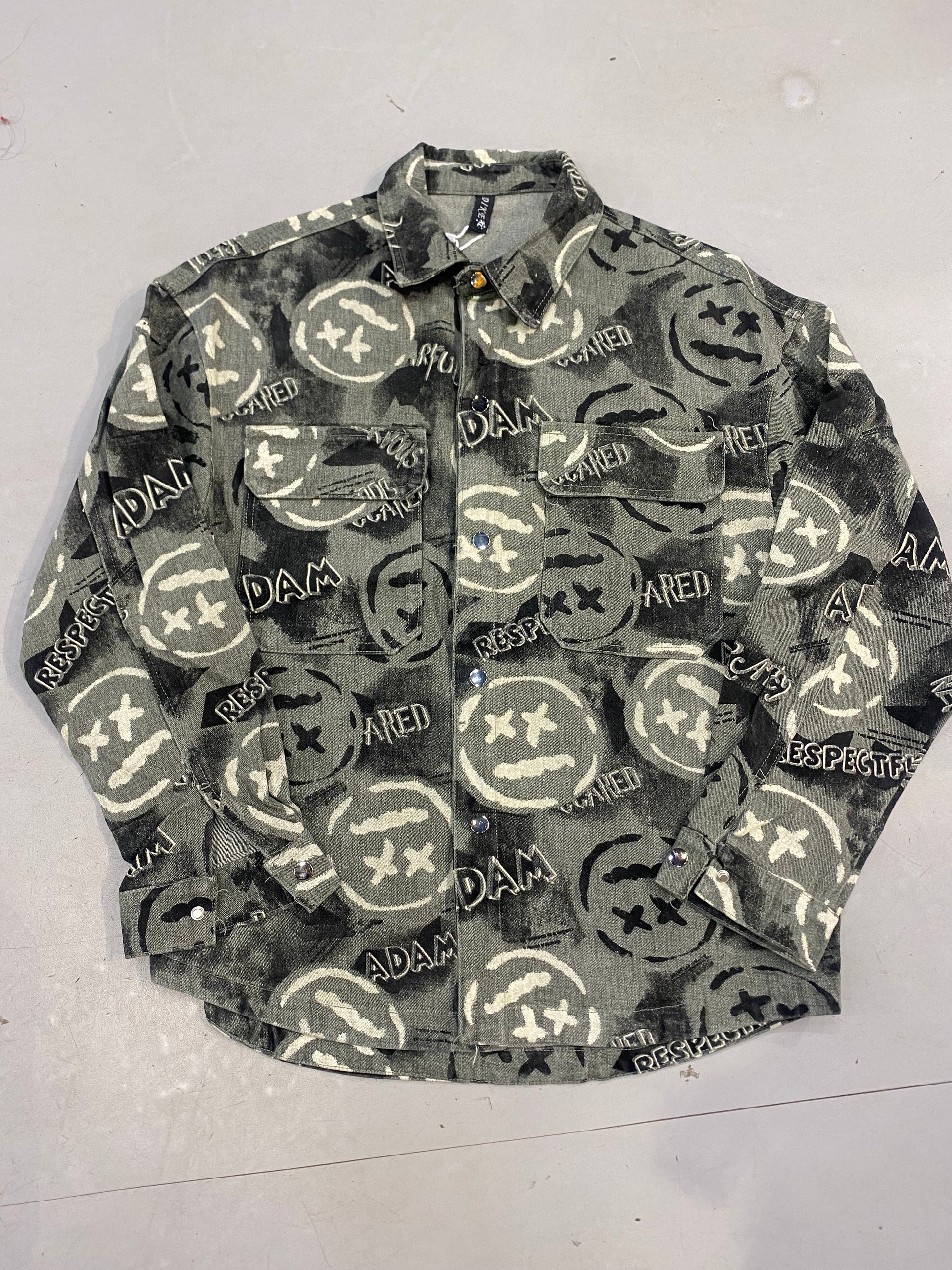 DIKE.F.S Shacket Scary Emoji Print Respectful Adam Print Premium Quality 8817