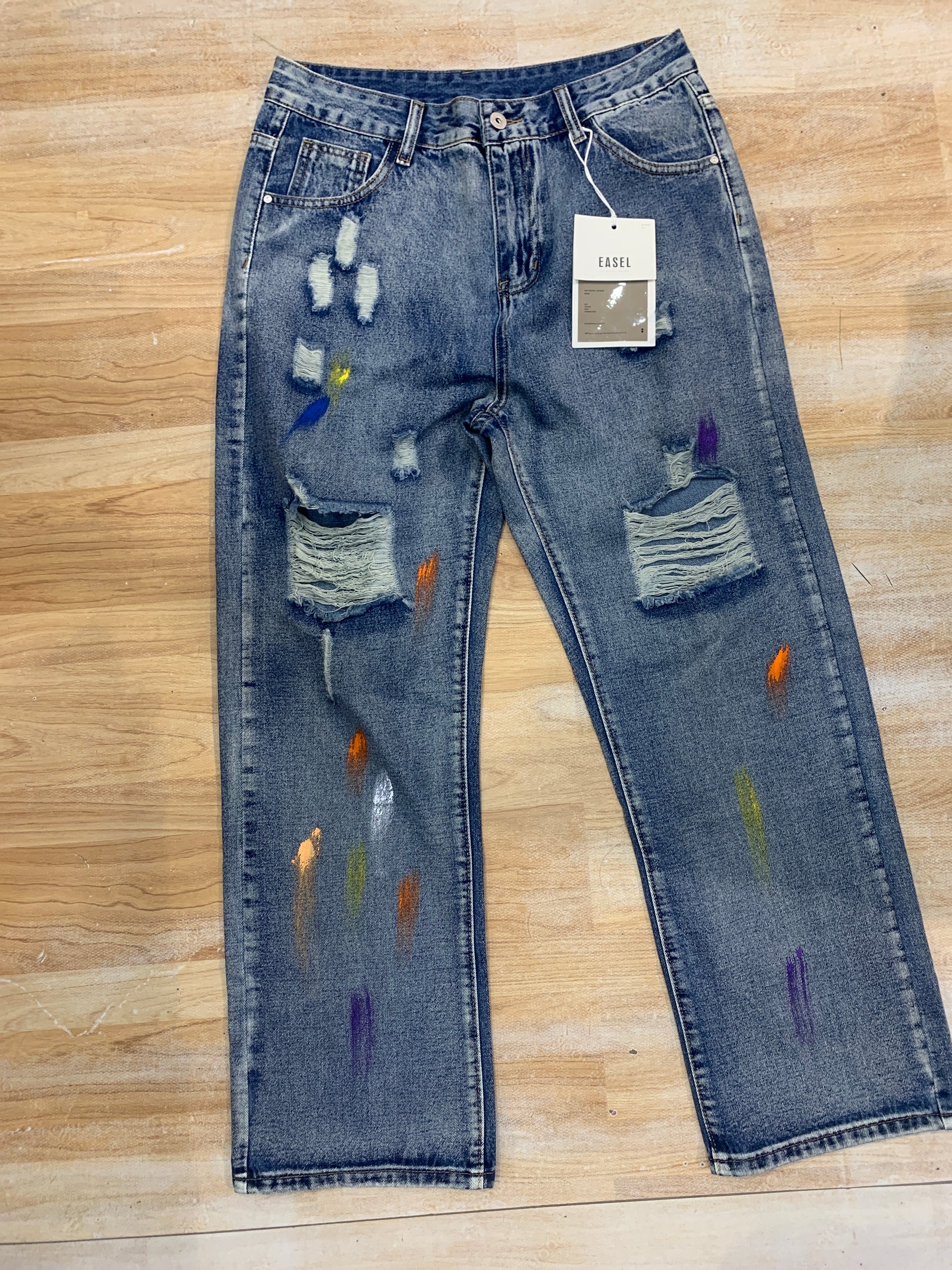 EASEL Dark Blue Rugged Paint Straight Fit Men’s Jeans 989395