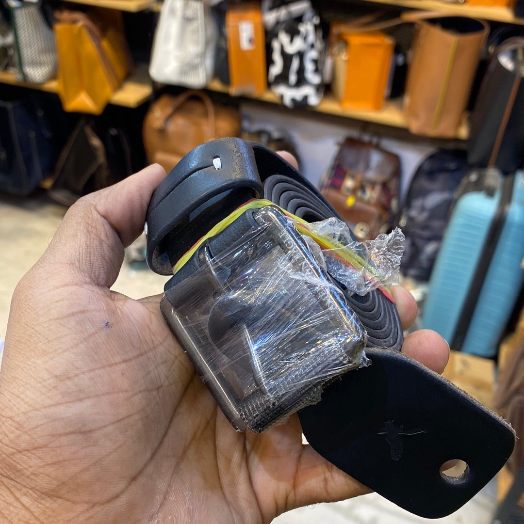 EMA Black Colour Black Buckle Genuine Leather Surplus Men’s Belt 11378
