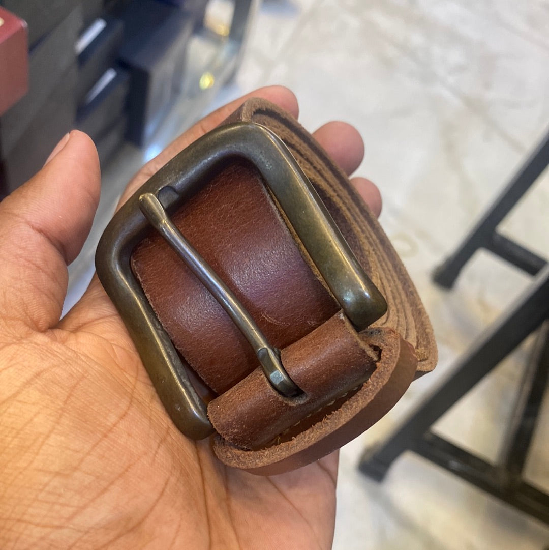 EMA Brown Colour Sliver Grey Buckle Genuine Leather Surplus Men’s Belt 900400