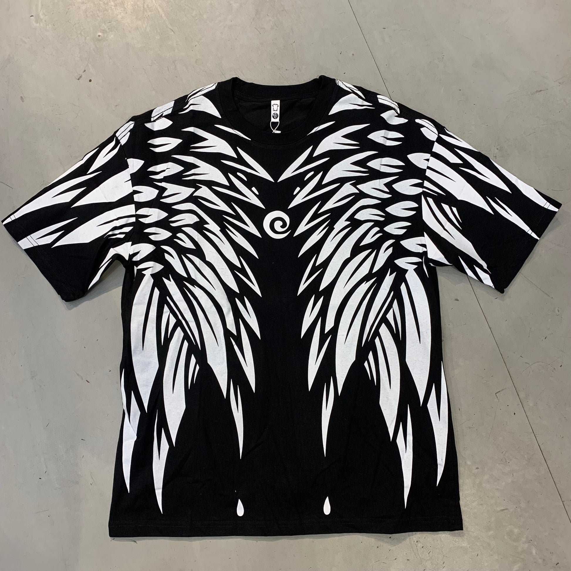 FASHION Black Colour White Wings Print With Imported Oversized Unisex TShirt 9004