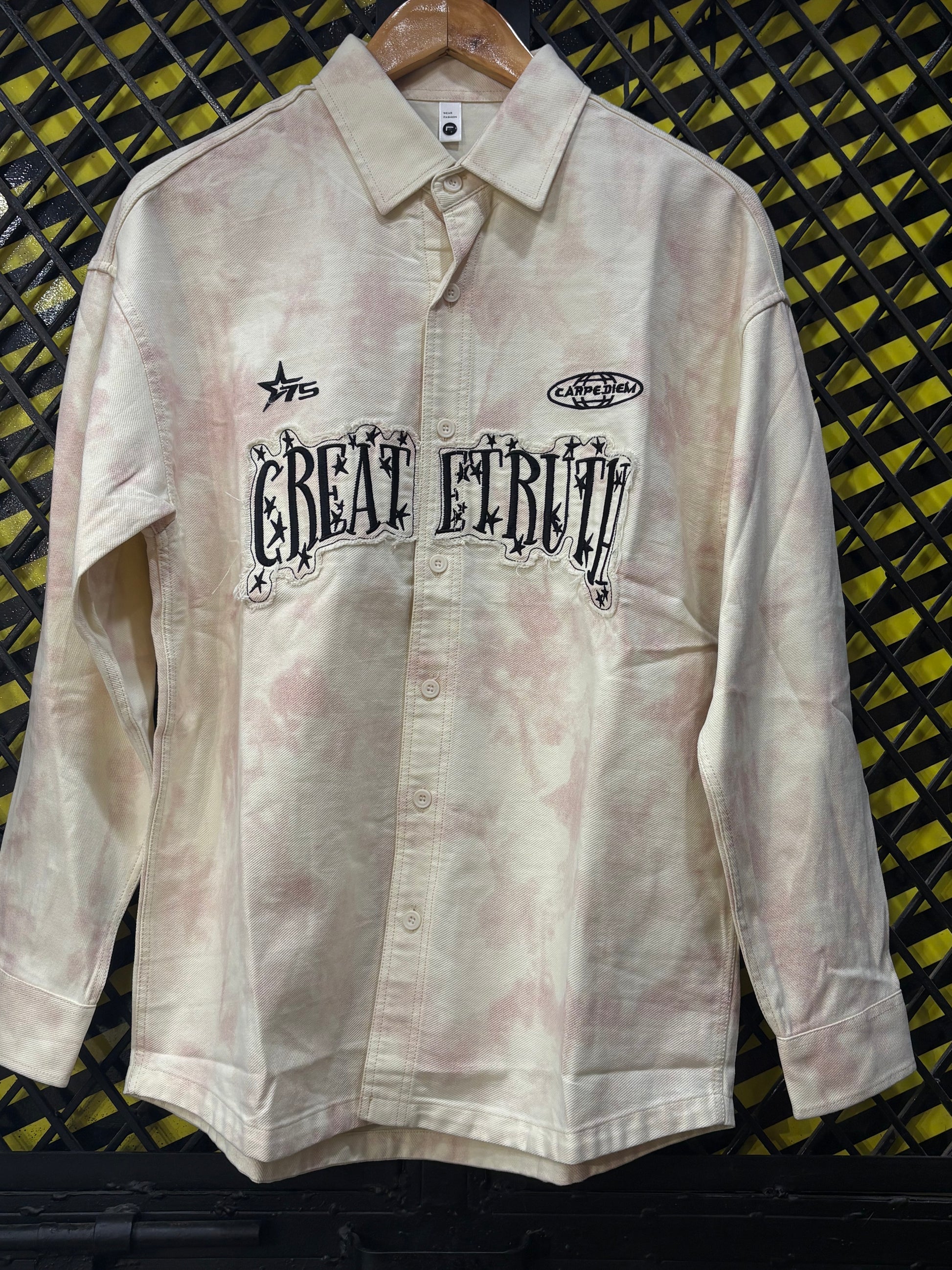GREAT ETRUTH Carpediem Pink Cream Dual Tone Full Sleeve Shacket 3661