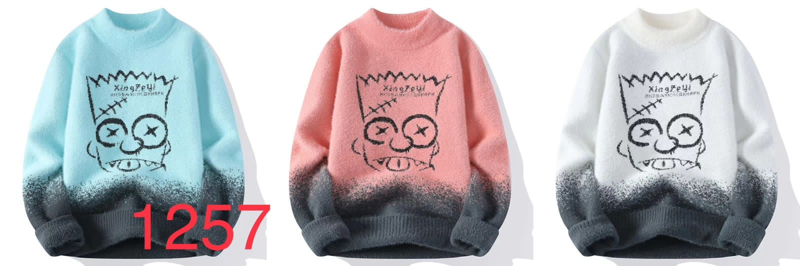 King Zeyi Peach Grey Colour with front Simpsons Speckled Pullover with Ribbed Hems Sweater 12570