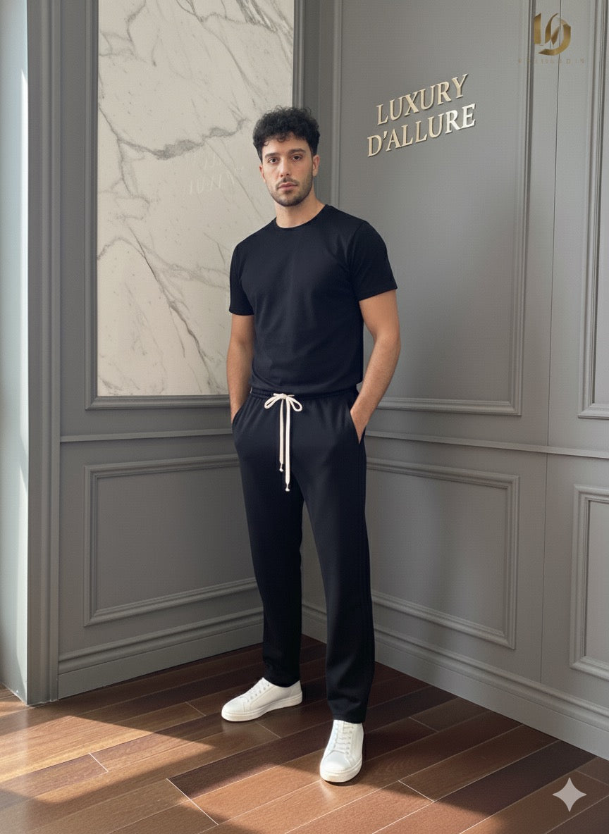 Kuxuan Black Colour Straight Baggy Fit Side 3 Stripe Imported Lower D8801