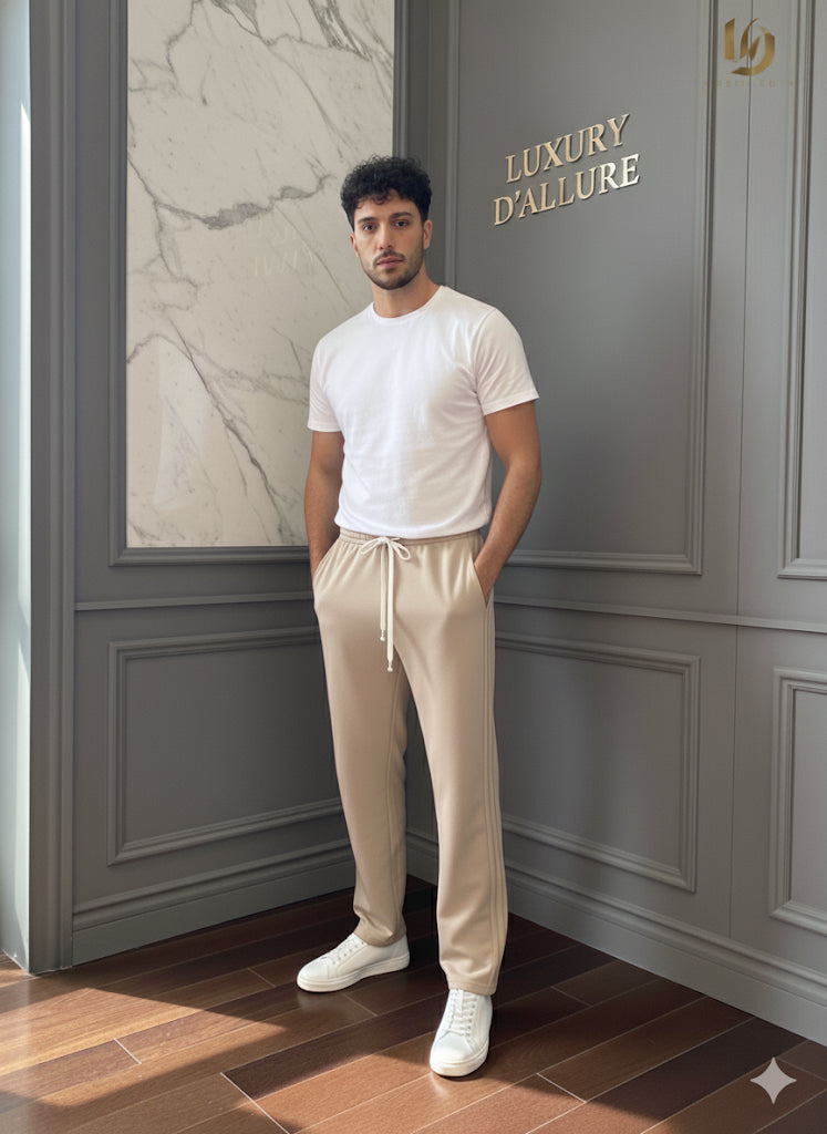 Kuxuan Cream Colour Straight Baggy Fit Side 3 Stripe Imported Lower D8801
