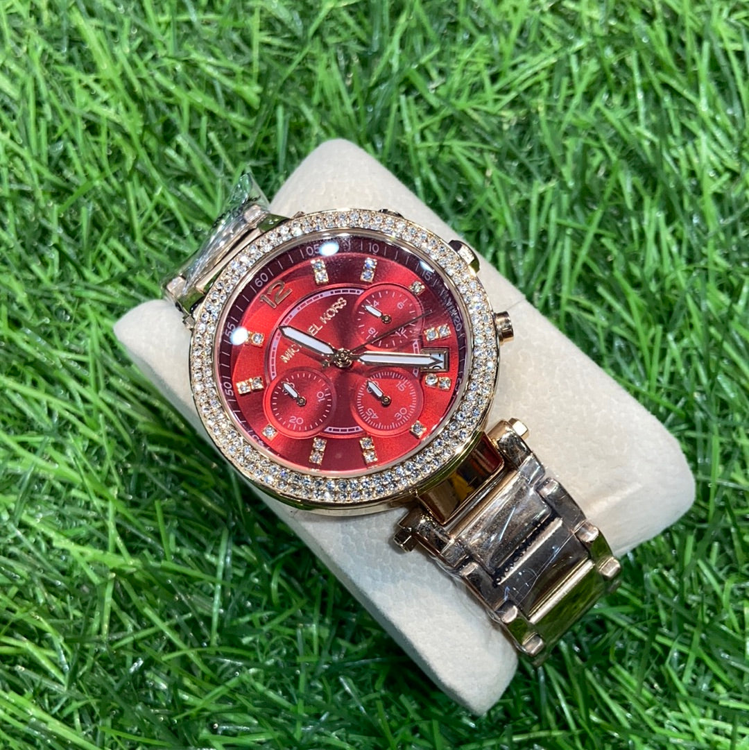 Cim Red Copper Chrono Stud CIM Ladies Chain Watch 400127