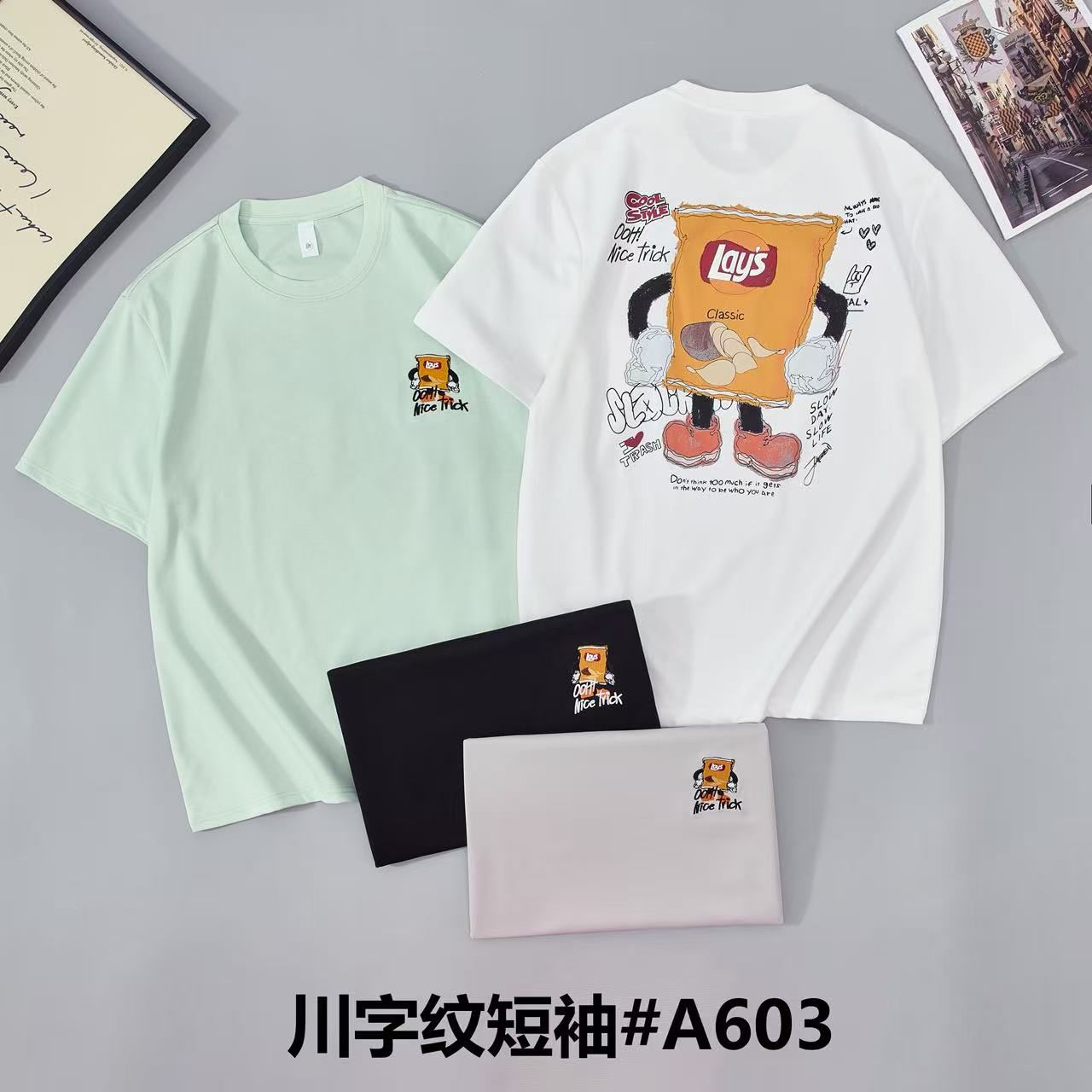 Lays Clasic Black Colour Ohh Nice Trick Yellow Lays Back Print Round Neck Tshirt A603