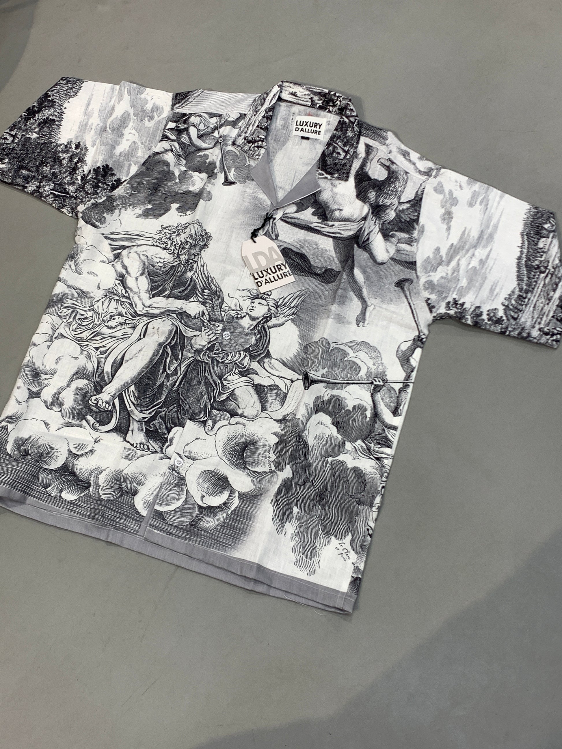 LDA White Black Grey Colour Multi Printed Half Sleeve Men’s Shirt 989639