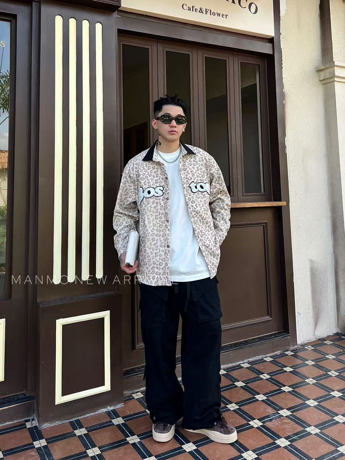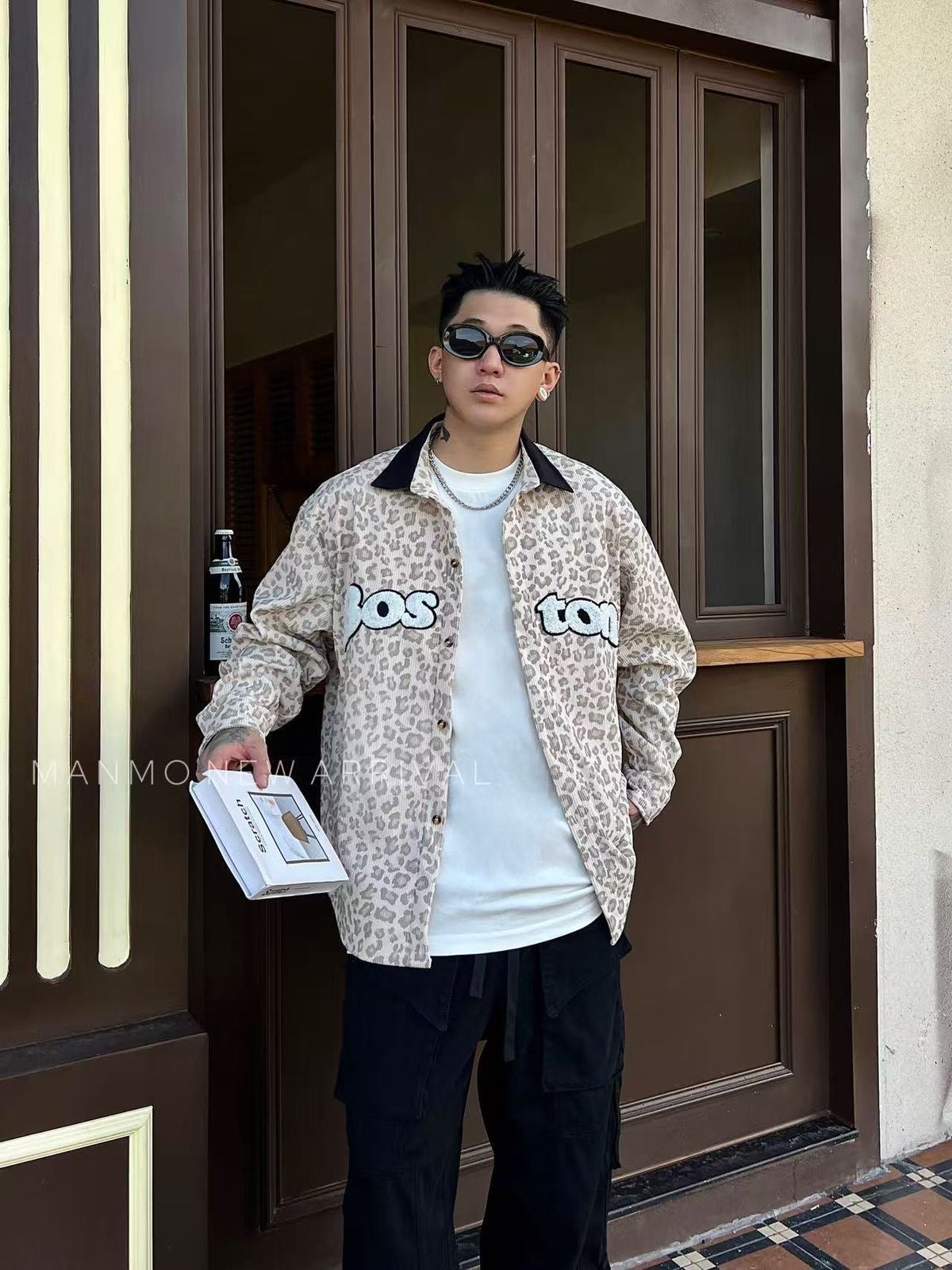 Man-Mo Boston Beige Leopard Print cotrise Full Sleeve Shirt 921