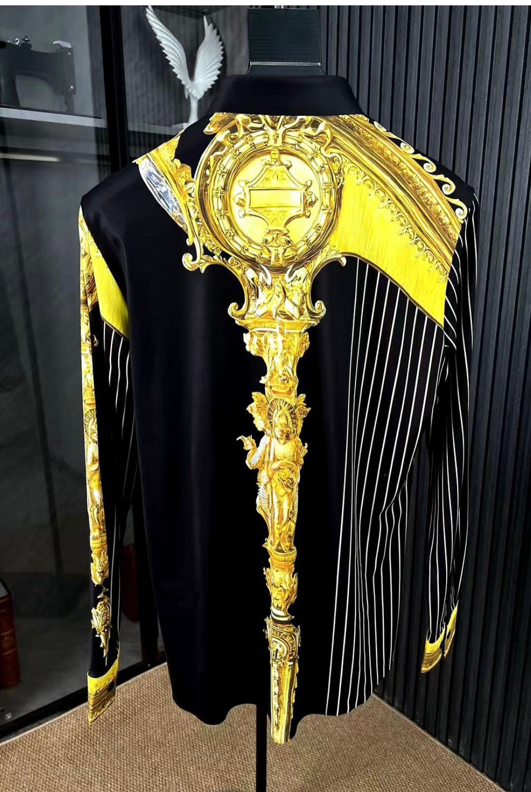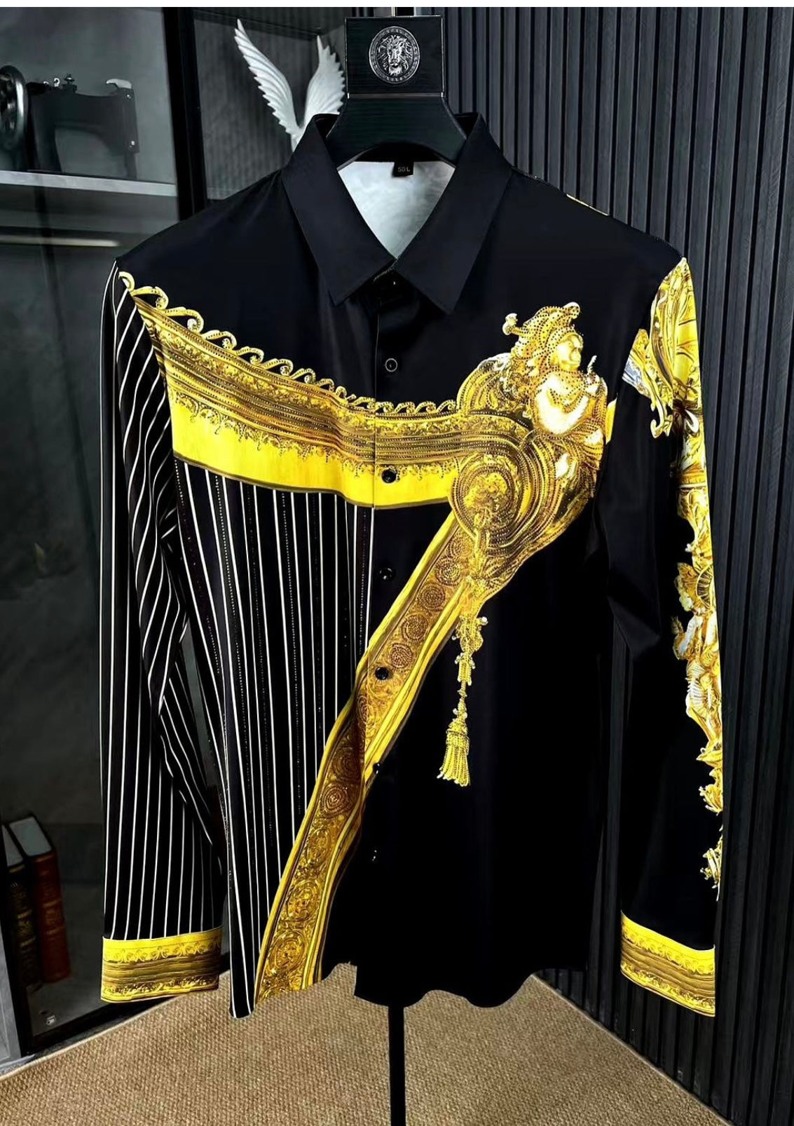 Modenggeda Black Gold Print Colour Stone Print Full Sleeve Imported Shirt 72560