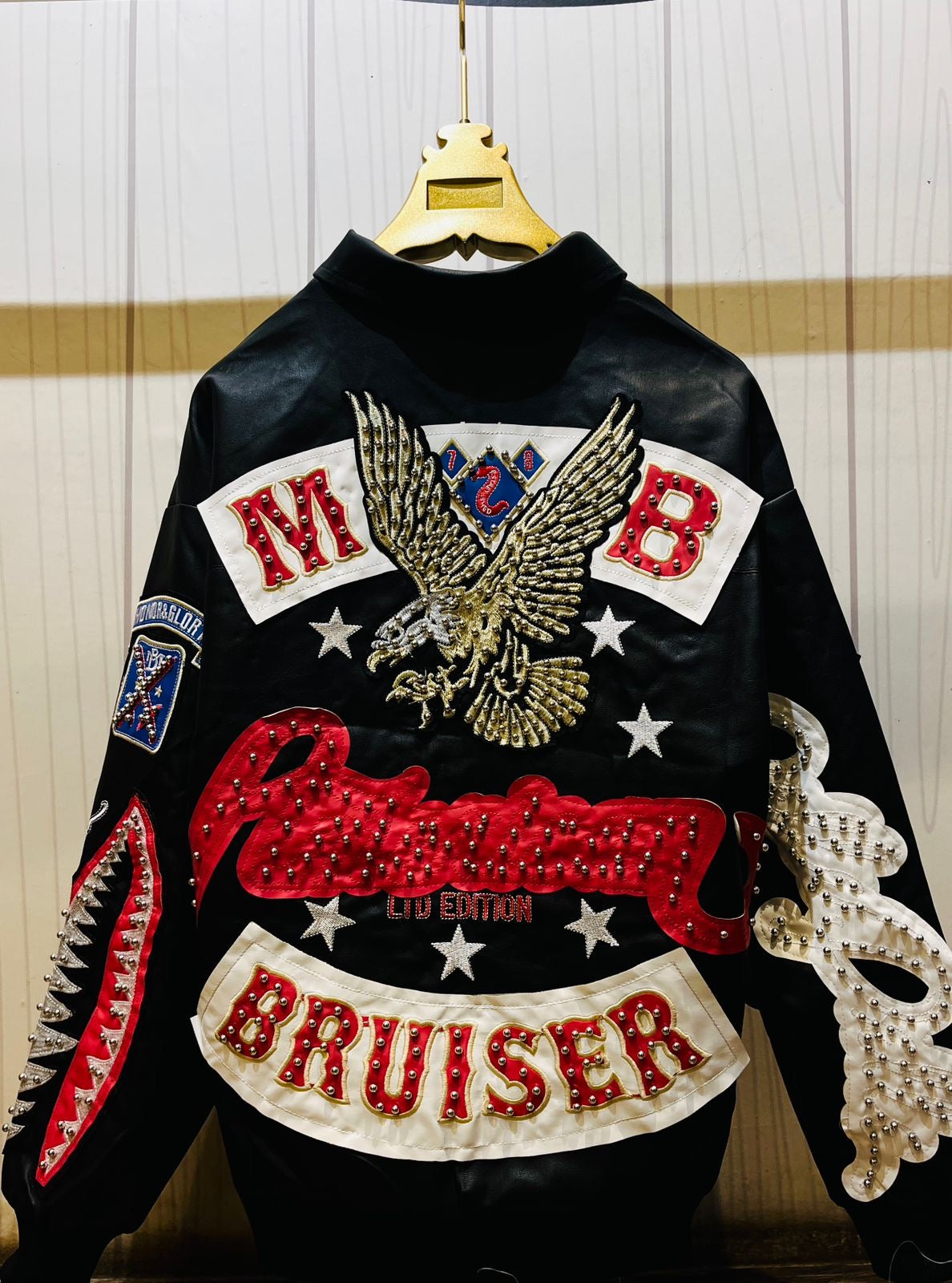Pelle Pelle Bruiser Black Colour Heavy Print Stud Work Premium Leather Jacket 2582