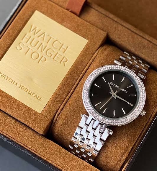 Cim Sliver Chain Black Dial Sliver Stud Ladies Watch 401410