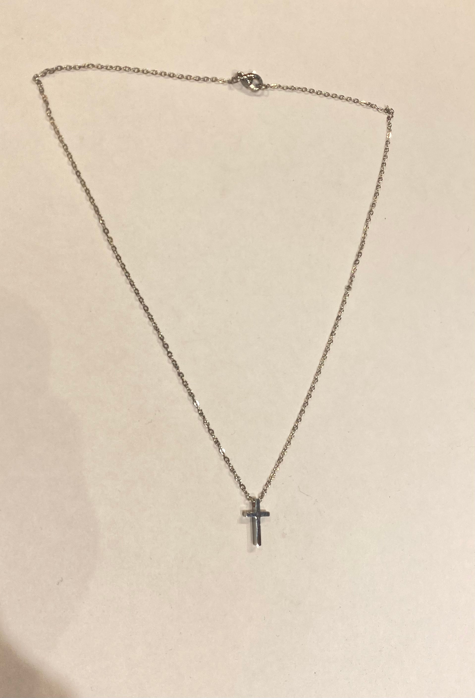 Sliver Colour Stainless Steel Jewel Cross Slim Unisex Necklace 199901