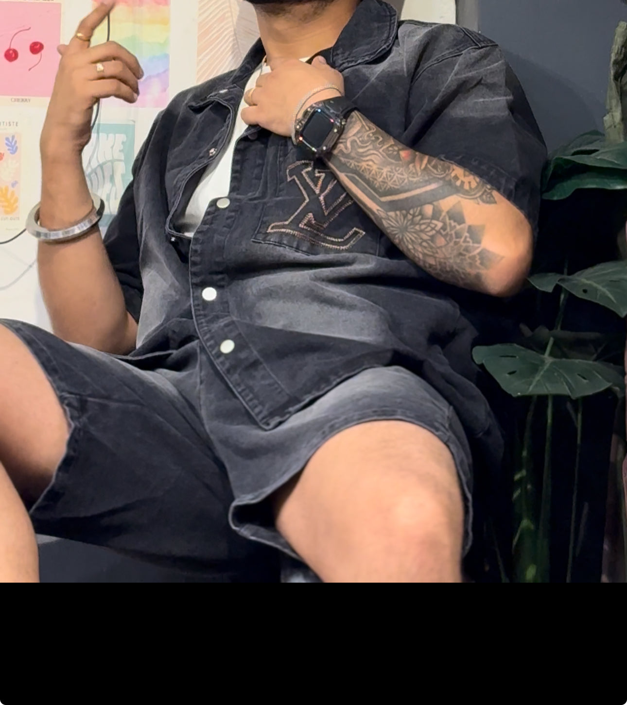 Uol Lou Black Grey Half Sleeve Shirt With Shorts Denim Coord Set 88027