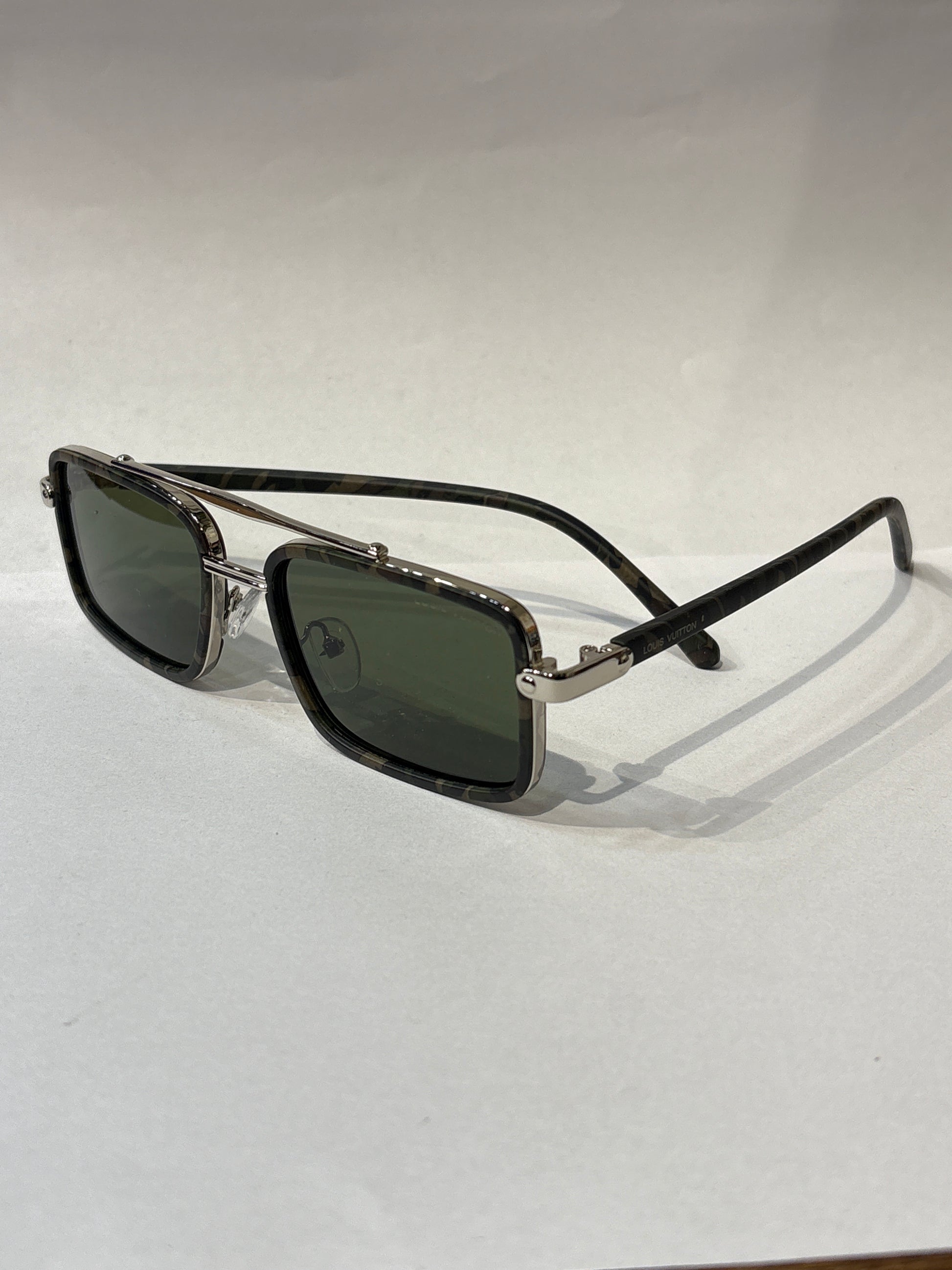Uol Silver Military Frame Green Shade unisex Sunglass ZS983355018-145
