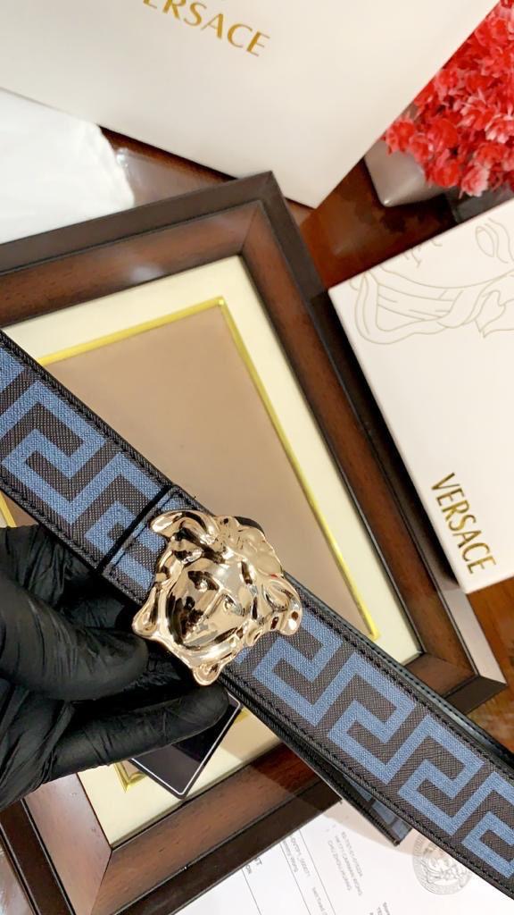 Ver Rev Black Print Strap Golden Buckle Belt 989066