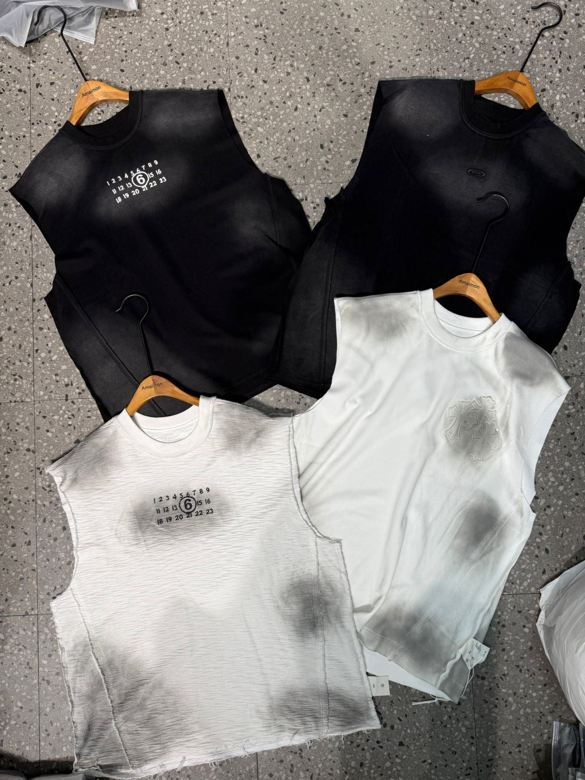 White Grey Faded Colour Number 6 Cut Sleeve Sandos LS2508
